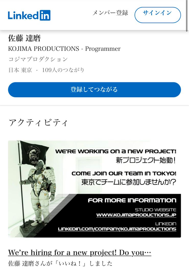 اینطور که پیداست به نظر میرسد پروژه جدید استودیو Kojima Productions یک عنوان کاملا تازه است و ارتباط خاصی به دنیای بازی Death Stranding نخواهد داشت. این فرمهای استخدامی برای جذب اعضای به صورت تمام وقت برنامه ریزی شدهاند. در توضیحات مختص به شغلها آمده است که این افراد، کاری تمام وقت در استودیو Kojima Productions به دست خواهند آورد و ساعت کاریشان از ساعت 10 صبح آغاز خواهد شد و ساعت پایان کار بسته به شرایط فرد و میزان مسئولیتش متغیر خواهد بود.