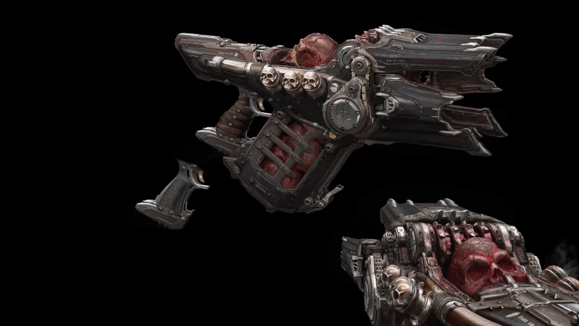 اسکالکراشر، در ظاهر شبیه مینیگانی است که جمجمهها را خرد کرده و خُردههای آن را بهسمت دشمنان شلیک میکند. پایه کار آن شبیه یک مسلسل زنجیرهای است که ابتدا آرام شلیک میکند، اما هر چه ماشه را بیشتر نگه دارید، سرعت شلیک و در نتیجه سرعت حرکت شخصیت شما نیز افزایش پیدا میکند. به گفته هوگو مارتین، این سلاح از نظر برد، کمی محدود است و بازیکنان باید به دشمنان نزدیک شوند. بااینحال، حالتی با نام «چوک» هم دارد که میتواند دقت سلاح را بالاتر ببرد و امکان حمله از فاصله بیشتری را فراهم کند. نتیجه کار این است که وقتی با گروهی از دشمنان ضعیف روبهرو میشوید، میتوانید از نیروی آتش بالا در فاصله نزدیک سود ببرید و اگر در موقعیت دورتری قرار گرفتید، حالت دیگر به کمکتان میآید.