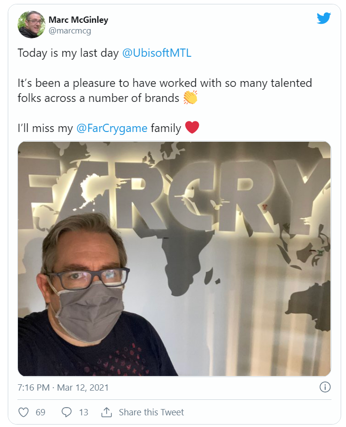 «مارک مکگینلی» (Marc McGinley)، از طراحان ارشد بازی که سالها است در استودیو Ubisoft Montreal کار میکند، در صفحه توییتر خود اعلام کرد که در حال گذراندن آخرین روز کاری خود در این شرکت است. او گفت که برای کار با همکاران خود در تیم مجموعه بازی Far Cry دلتنگ خواهد شد و افراد بسیاری هم برای او آرزوی موفقیت کردند. البته سوالی که ذهن تمام طرفداران را مشغول خود کرده این است که این جدایی، چه تاثیری روی روند ساخت و تولید بازی Far Cry 6 خواهد گذاشت.