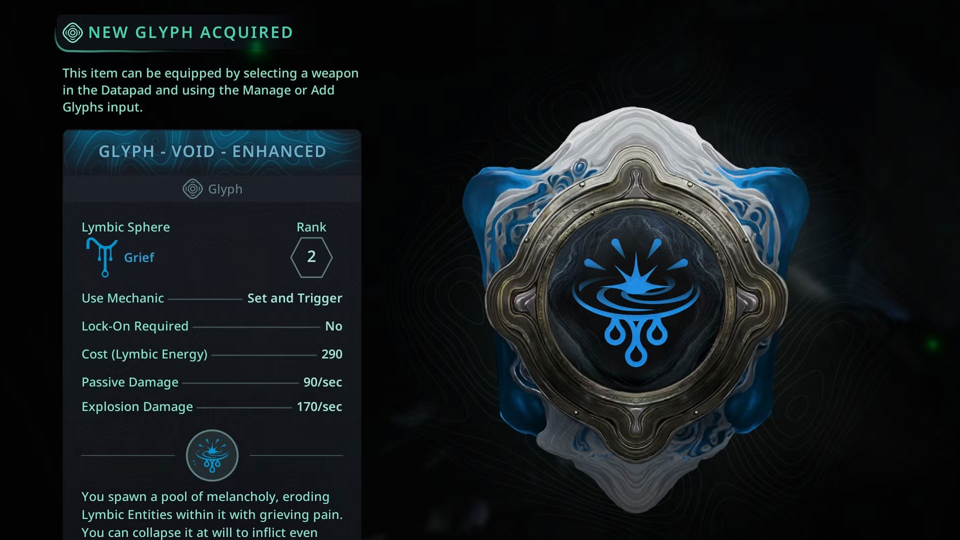 گلیفها ابزارهای بسیار قدرتمندی در بازی هستند که به سلاحها متصل میشوند تا قابلیتهای بیشتری به آنها ببخشند. آنها از انرژی لیمبیک استفاده میکنند که با شکست دادن دشمنان به دست میآید. اما نکته مهم این است که گلیفها هیچ زمان بازیابی ندارند و میتوانید هرچقدر انرژی لیمبیک داشته باشید، از آنها استفاده کنید.