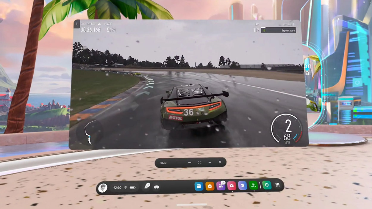 قابلیت خم یا صاف کردن صفحهنمایش مجازی در این هدست بسیار کاربردی است، اما نمایش تمامصفحه برخی ضعفهای سرویس Xbox Cloud Gaming را نیز نمایان میکند؛ از جمله نرخ بیت پایین و وضوح نهچندان چشمگیر! برای مثال، Forza Horizon 5 در برخی صحنهها کمی پیکسلی بهنظر میرسید؛ هرچند تأخیر محسوسی در طول تجربهی بازی مشاهده نمیشود.