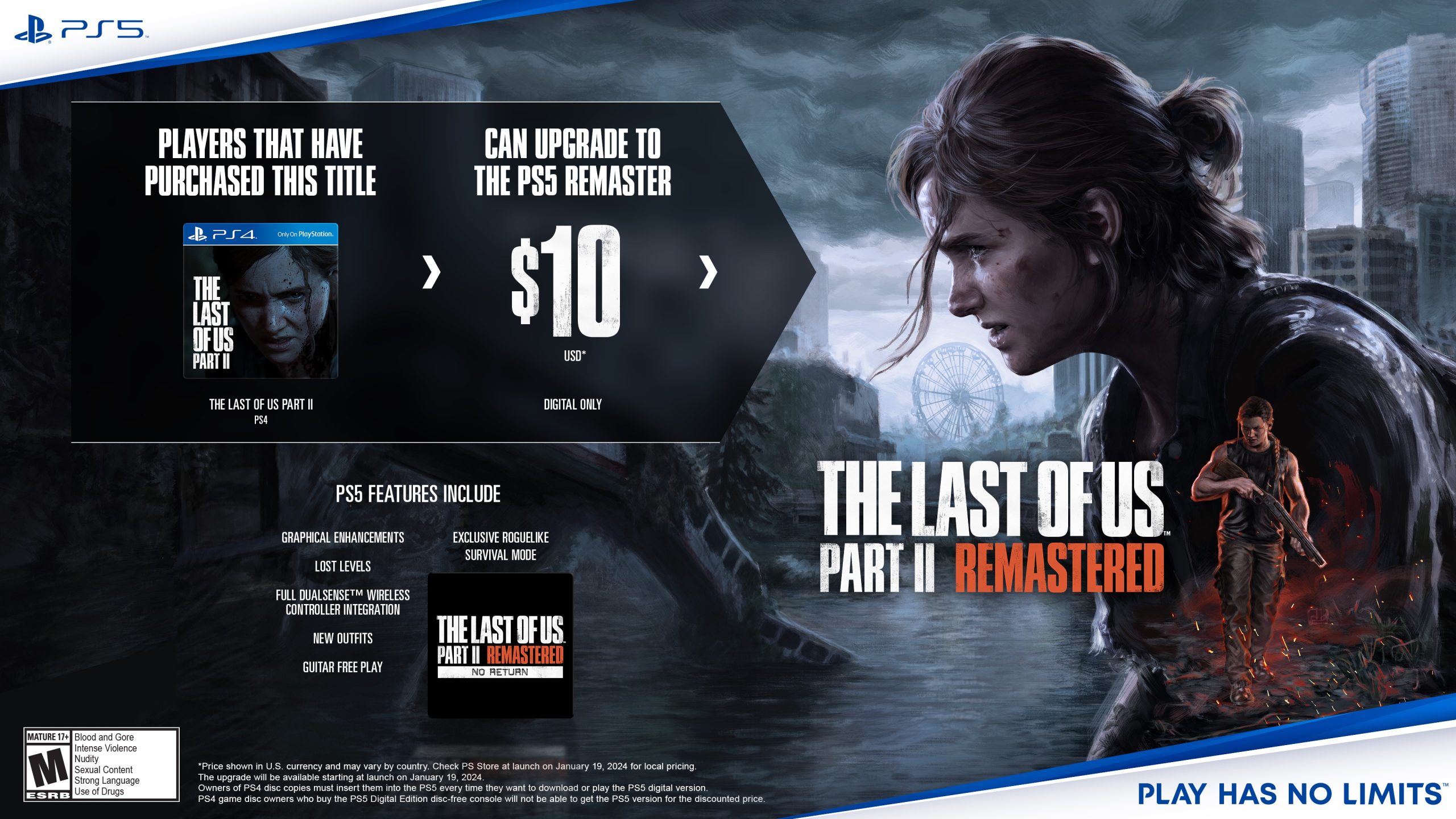 پس از افشاگری و شایعات در روزهای گذشته، استودیو ناتی داگ و سونی به صورت رسمی بازی The Last of Us Part 2 Remastered را معرفی کردند و اعلام شد که تا چند ماه دیگر، این عنوان تحسین شده اکشن ماجراجویی، به شکل پیشرفته و توسعهیافته، به کنسولهای پلی استیشن 5 راه خواهد یافت. با اینکه قیمت این نسخه هنوز به صورت رسمی تایید نشده است، اما خبرهای خوبی برای کسانی که قبلا بازی اصلی را خریداری کرده بودند، وجود دارد.