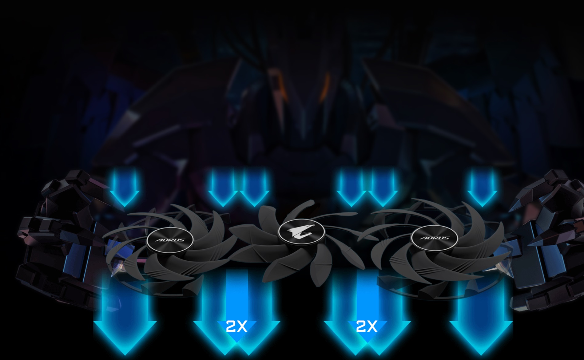 بیایید از فنهای این کارت گرافیک شروع کنیم که جهت چرخش مجاور برعکس دارند. یعنی فنهای مجاور در جهت ساعت گرد و پاد ساعت گرد میچرخند که این کار باعث افزایش جریان و فشار هوا میشود، زیرا گردش هوا بین هر دو فن به صورت یکسان و آشفتگی هوای کمتری صورت میگیرد و در نتیجه به گردش هوای بهتر کمک میکند. این مورد همان قابلیت Alternate Spinning این سیستم است. فنهای کارت گرافیک Aorus GeForce RTX 3070 Ti Master طراحی خاصی دارند، زیرا لبه فنها به صورت مثلثی طراحی شده است که جریان هوا را به چند قسمت تقسیم میکند. سپس این جریان هوا از طریق شیارهای روی پرههای فن عبور میکند و یک گردش هوای روان را میسازند. عمر این فنها هم به دلیل روغنهای گرافینی بیشتر از دو برابر افزایش مییابد، زیرا این نوع خاص روغن اصطکاک بین فنها را کاهش میدهد و عمر آنها را به فنهای ساچمهای نزدیک در حالی که صدای کمتری تولید میکنند. با بهرهوری از قابلیت 3D active fan، فنها در سطح بار پایین یا حالت بیکاری سیستم، خاموش میشوند و در نتیجه صدای کمتری تولید میشود. حتا وقتی که در حال تجربه یک بازی سبک هستید و فشار زیادی به کار گرافیک وارد نمیشود، صرفا سطح باری که بر پردازنده وارد میشود به قدری نیست که گرمای زیادی تولید کند و دمای آن در طیف امنی باقی میماند که نیازی به استفاده از فنها نیست. اما به هر حال یک کارت گرافیک خنکتر، سالمتر میماند و برای همین میتوانید از طریق برنامههای مختلف یک پروفایل تعریف کنید که در سطح بارهای مختلف، هر فن کیس با چه سرعتی بچرخد که همیشه کیس خنکتری داشته باشید.
