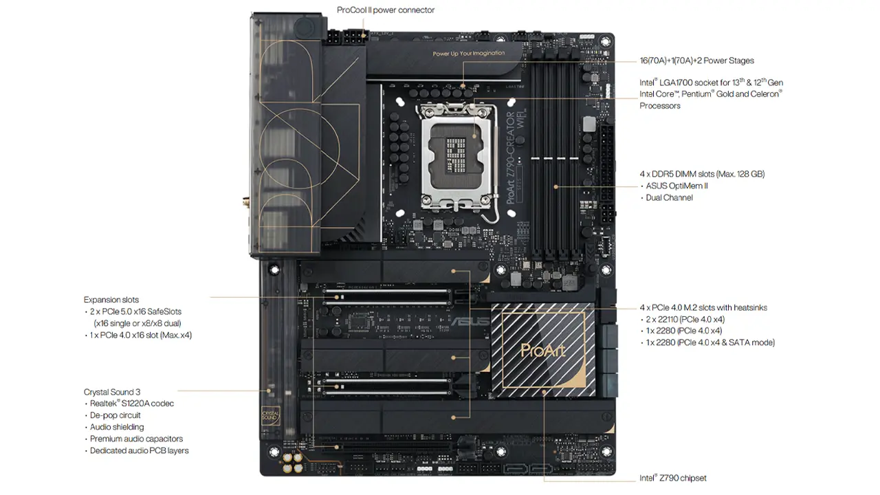 مادربرد ProArt Z790-Creator WiFi از چیپست LGA 1700 اینتل پشتیبانی میکند که در نتیجه میتوانید از سری ۱۲،۱۳و 14 اینتل را روی این مادربرد نصب کنید.