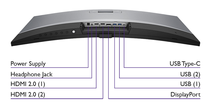 پورتهای این نمایشگر شامل دو HDMI 2.0، یک ورودی DisplayPort، یک ورودی USB Type-C، دو پورت USB 3 و یک جک خروجی صدا برای اتصال به هدفون یا بلندگوهای خارجی است. ورودی USB Type-C این صفحه نمایش از انتقال داده، نمایش تصویر و همچنین شارژ دستگاههای دیگر تا توان 10 وات پشتیبانی میکند. هر چند که محل قرارگیری پورتها در قسمت پشتی مانیتور اندکی دور از دسترس بوده و شاید خوشایند تمام کاربران نباشد. همچنین منوی روی صفحه یا همان OSD نمایشگر به راحتی در دسترس بوده و سیستم آن بسیار ساده و کاربرپسند است.