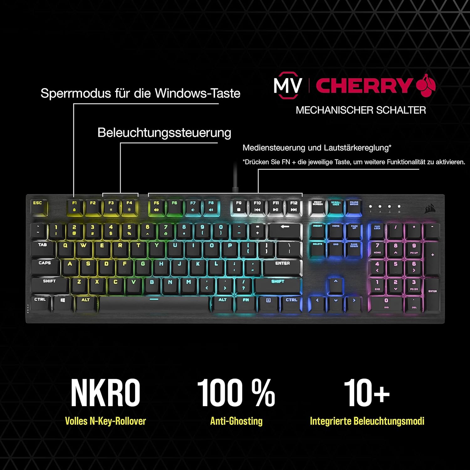 سوئیچهای مکانیکی Cherry MX Speed یکی از نقاط قوت اصلی کیبورد Corsair K60 RGB Pro به شمار میروند. این سوئیچها با هدف ارائه عملکردی فوقالعاده سریع و دقیق طراحی شدهاند. زمان پاسخگویی آنها به حداقل رسیده و تنها با فشار ۱.۲ میلیمتر، فعال میشوند. این ویژگی برای بازیکنانی که نیاز به واکنشهای سریع دارند، بسیار حائز اهمیت بوده و مفید است. در مقایسه با سایر سوئیچهای مکانیکی، Cherry MX Speed به لطف عملگر کمعمق خود، سرعت بالاتری دارد که باعث افزایش کارایی در بازیهای رقابتی و اکشن میشود.