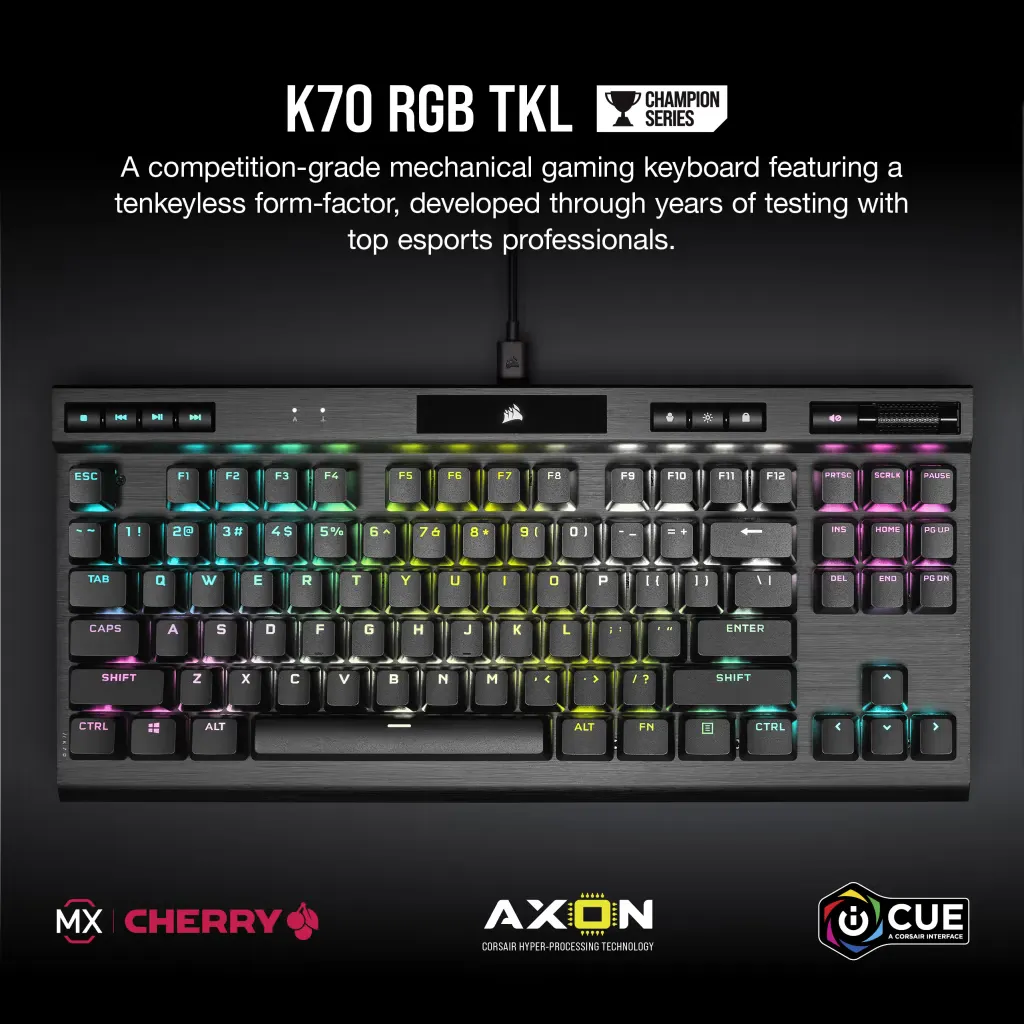 خرید کیبورد Corsair K70 RGB TKL - سوییچ مکانیکی Cherry MX RGB قرمز - سری Champion