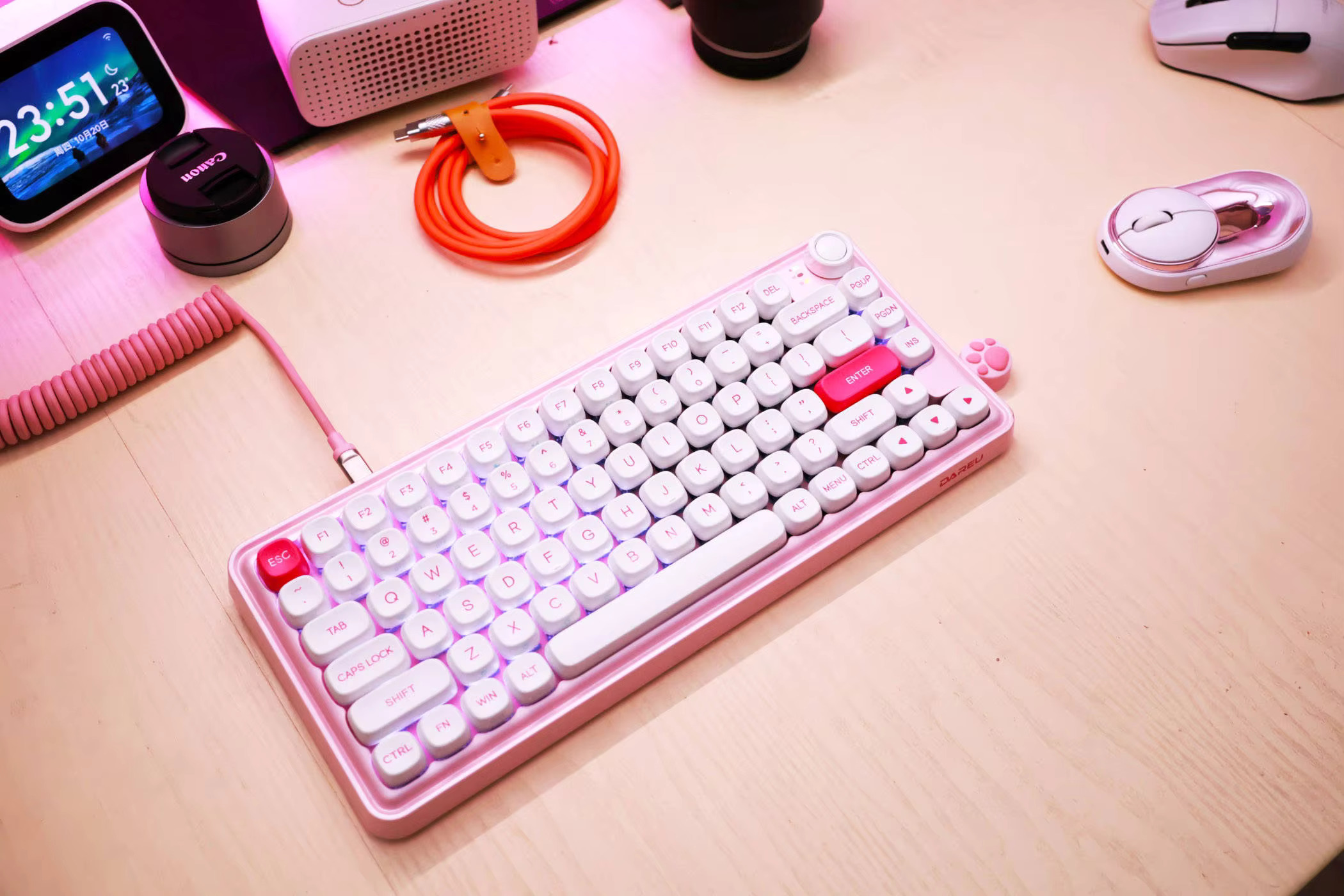 کیبورد Dareu Z82 با طراحی مدرن و زیبا، به راحتی توجه کاربران را جلب میکند. رنگ صورتی آبنباتی این کیبورد به محیط کار یا بازی شما زندگی و انرژی میبخشد. طراحی باریک و جمع و جور این کیبورد، فضای کمی را اشغال میکند و به راحتی در هر محیطی قرار میگیرد. کیفیت ساخت این کیبورد نیز قابل توجه است. Dareu Z82 با استفاده از مواد با کیفیت بالا ساخته شده که دوام و ماندگاری آن را تضمین میکند. کلیدهای این کیبورد به گونهای طراحی شدهاند که در برابر سایش و فشار مقاومت بالایی داشته باشند. این ویژگیها باعث میشود که کیبورد در طول زمان عملکرد خود را حفظ کند و نیاز به تعویض زودهنگام نداشته باشد.