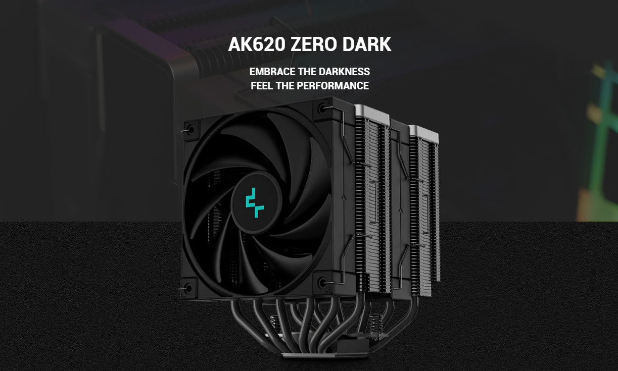 خنککننده DeepCool AK620 Zero Dark با طراحی دو برج و پوشش تماماً مشکی، عملکرد بسیار بالایی ارائه میدهد. شش لوله حرارتی مسی با آبکاری نیکل و فنرهای آلومینیومی فشرده، توانایی دفع حرارتی تا ۲۶۰ وات را دارند که برای پردازندههای سطح بالا مناسب است.
