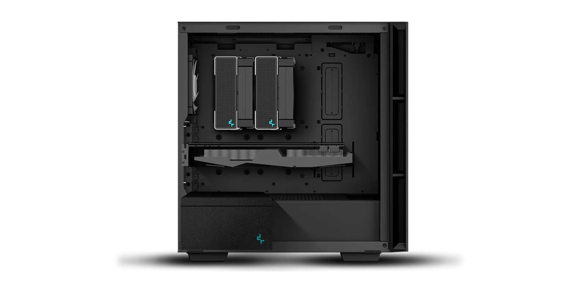 طراحی کیس DeepCool CH560 به شکلی است که توانایی پشتیبانی از مادربردهای Mini-ITX، Micro-ATX، ATX و E-ATX را دارد و فضای کافی برای نصب سختافزارهای پیشرفته را فراهم میآورد. این محصول همچنین میتواند خنککنندههای پردازنده با ارتفاع حداکثر ۱۷۵ میلیمتر و کارتهای گرافیکی با طول حداکثر ۳۸۰ میلیمتر را به راحتی در خود جای دهد. علاوه بر این، امکان نصب رادیاتورهای خنککننده مایع تا ابعاد 360 میلیمتر در پنلهای جلو و بالا وجود دارد که انعطافپذیری بیشتری برای کاربران حرفهای فراهم میکند.