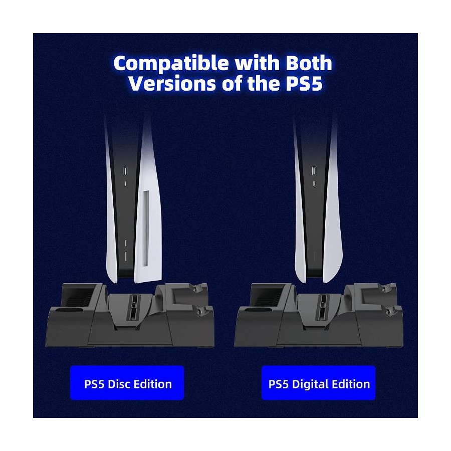 پایه چندکاره PS5 با هر چهار مدل پلی استیشن 5 دیسک خور، دیجیتال، پلی استیشن 5 اسلیم دیسک خور و دیجیتال سازگار است و محصولی مناسب برای جمع آوری و منظم کردن سیستم گیمینگ شما است.