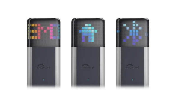ماتریسی متشکل از صدها چراغ LED میتواند به صورت داینامیک وضعیتهای مختلف را نمایش دهد. ربات هوشمند EMO GO HOME میتواند با این آیکونها تعامل داشته باشد و در بهروزرسانیهای آینده، قادر خواهد بود قابلیتهای بیشتری هم پیدا کند.
