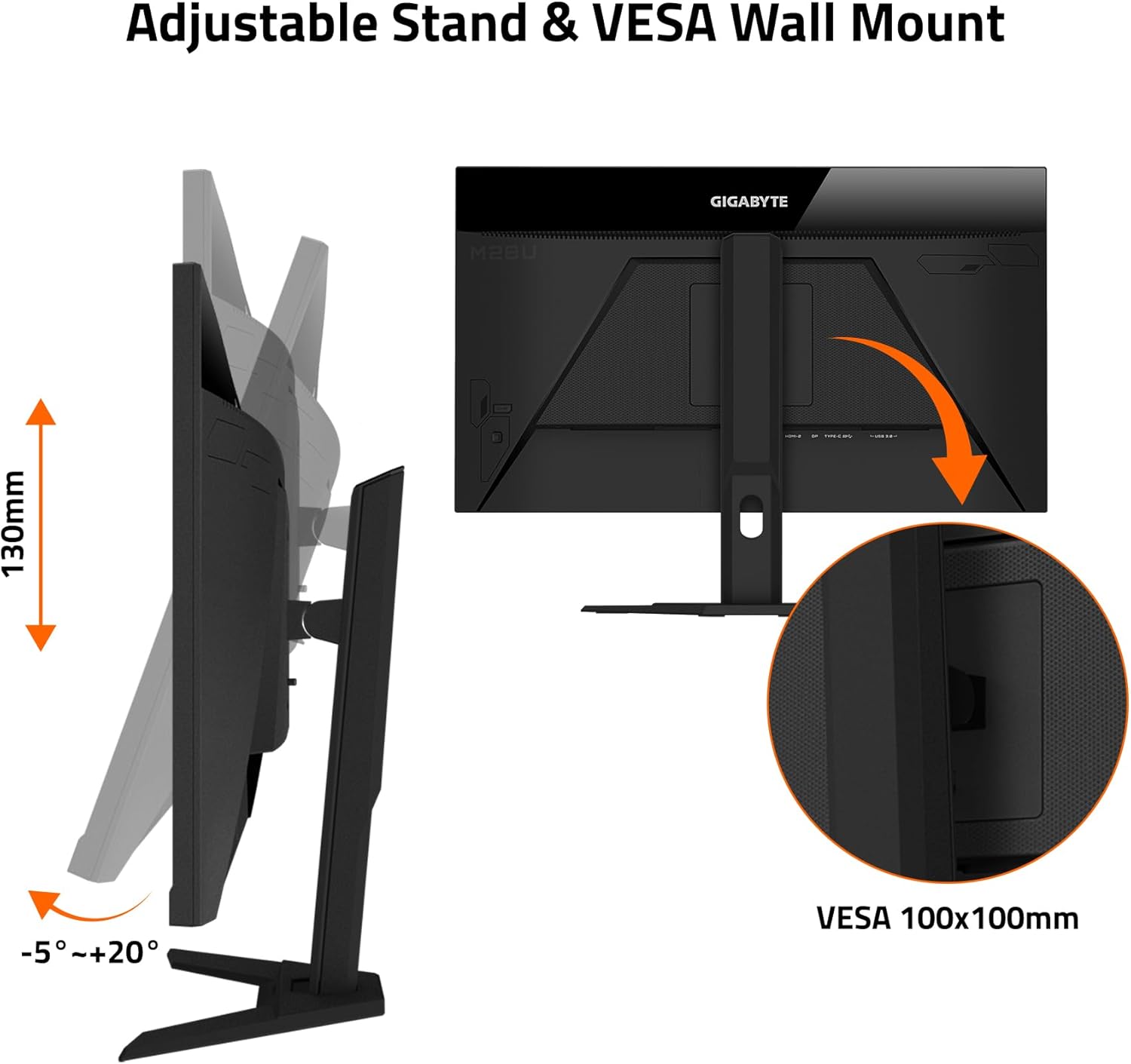 مانیتور Gigabyte M28U با طراحی مینیمال و ارگونومیک، نهتنها از نظر زیباییشناسی قابل توجه است، بلکه راحتی استفاده در طولانیمدت را نیز تضمین میکند. پایه قابل تنظیم در ارتفاع، زاویه و چرخش، امکان شخصیسازی کامل را فراهم میسازد. بدنه مشکی مات با حاشیههای باریک، حس مدرن و حرفهای را منتقل میکند و برای محیطهای کاری یا گیمینگ کاملاً مناسب است.