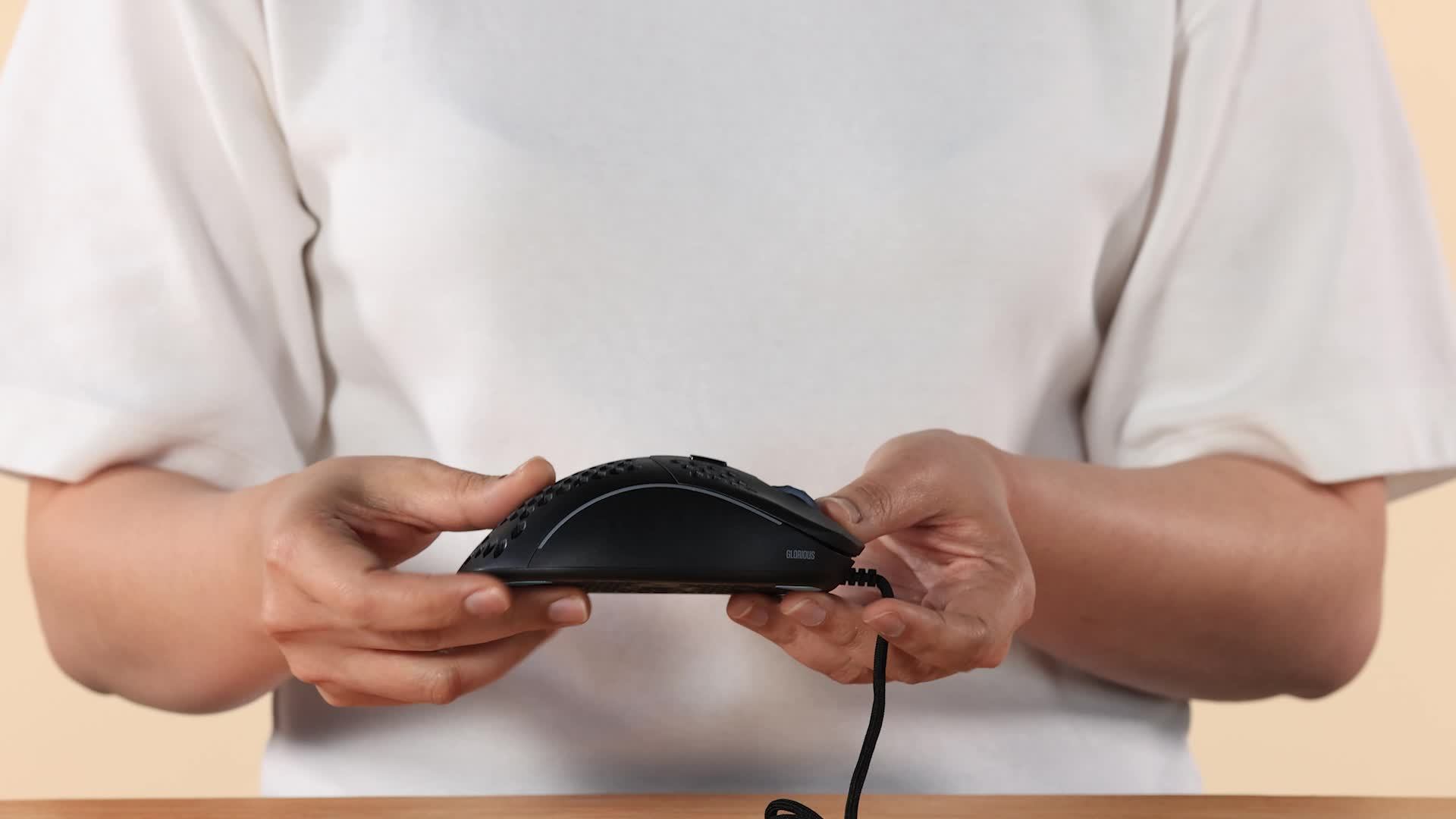 موس Glorious Model D Minus بدون زحمت خاصی روی سطح محیط حرکت میکند و یک پوسته لانه زنبوری ۶۷ گرمی دارد که دوام آن استثنایی است. این طراحی سبک وزن خستگی دست شما را، خصوصاً هنگامی که زمان زیادی را برای بازی کردن سپری میکنید، کاهش میدهد و حرکات سریعتر و روانتری را برای مچ شما را فراهم میکند. طراحی راحتش مخصوص بازیکنان راست دست است و بیشتر برای دستهای کوچک و متوسط طراحی شده است.
