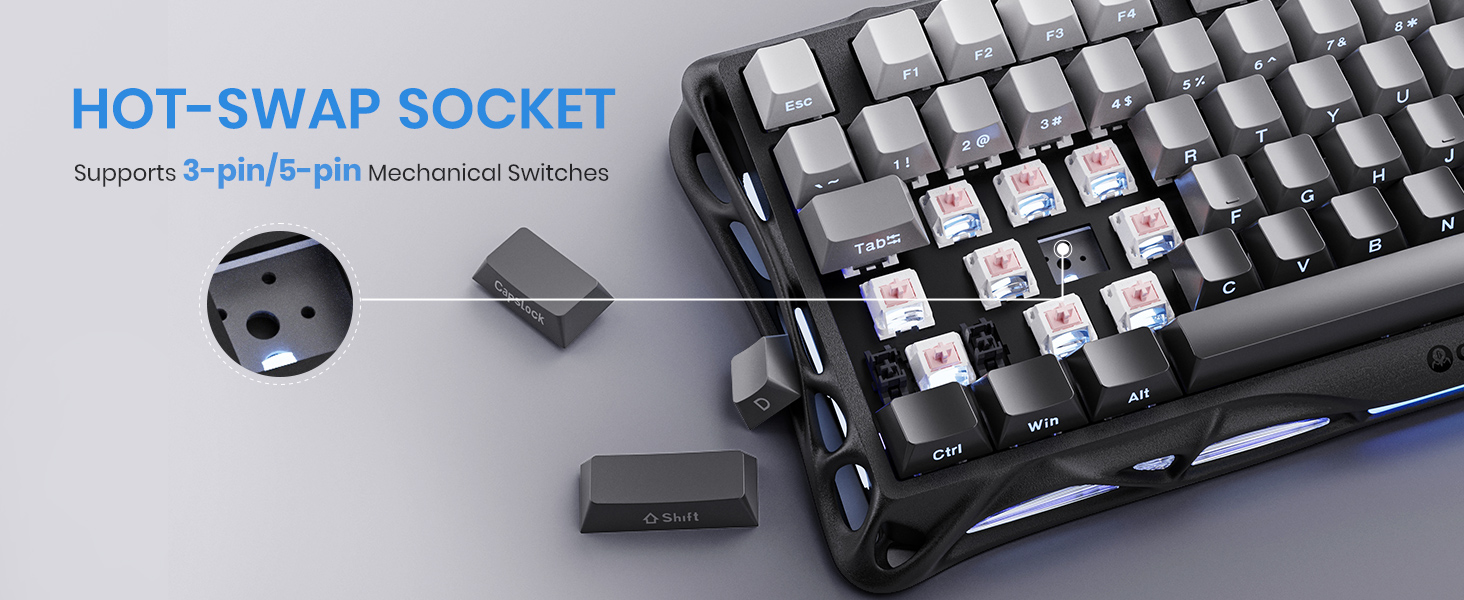سوئیچهای مکانیکی اختصاصی در زیر هر کلید قرار گرفتهاند که بازخورد لمسی ملموس و صدای ملایمتری نسبت به سوئیچهای آبی استاندارد ارائه میکنند. میانگین فاصله حرکت تا ردی (actuation) حدود 1.8 میلیمتر است که یک تعادل مطلوب میان سرعت و دقت ایجاد میکند. این تجربه برای گیمرها و تایپیستها بهطور یکسان جذاب خواهد بود.