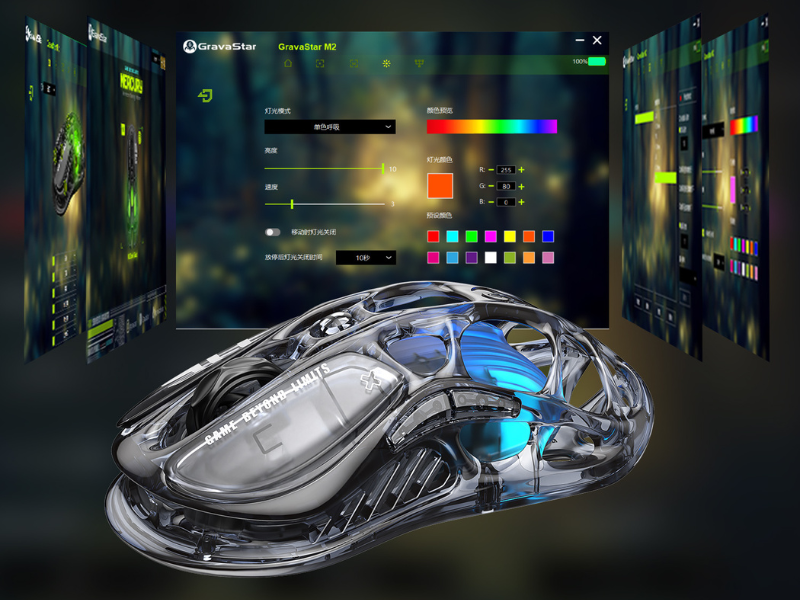 نرمافزار ویندوز GravaStar محیطی ساده برای تنظیم دقیق تمام پارامترها فراهم میکند. نرخ نمونهبرداری را از ۱۲۵ تا ۱۰۰۰ هرتز تغییر دهید، تمام دکمهها را دوباره نگاشت کنید، فاصله برداشتن ماوس از سطح را کالیبره کنید و مراحل DPI را بر مبنای نمودار شکل دهید. نمودارهای لحظهای تأخیر کلیک و مصرف باتری را نشان میدهند و بهروزرسانیهای فریمور قابلیتها و الگوهای نورپردازی جدید اضافه میکنند.