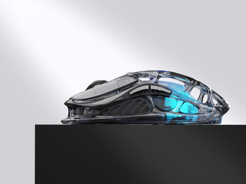موس بیسیم GravaStar Mercury M2 ترکیبی از طراحی آیندهنگرانه و ویژگیهای حرفهای را ارائه میدهد. پوسته شفاف مشکی با الگویی ششضلعی و الهامگرفته از مهندسی فضاپیما، وزن موس را کاهش داده و در عین حال مقاومت بالایی دارد. با وزن تنها ۶۹ گرم، در دست کمترین احساس سنگینی را ایجاد میکند و امکان مانورهای سریع و هدفگیری دقیق در بازیهای پرسرعت را فراهم میآورد. بدنه مقاوم از جنس ABS و پورت تقویتشده USB-C دوام دستگاه را تضمین میکند.