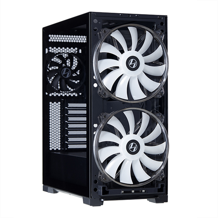 این کیس کامپیوتر از لحظه خرید به طور پیشفرض دارای دو فن 200 میلیمتری D-RGB و یک فن 120 میلیمتری است. همچنین میتوان یک رادیاتور 280 میلیمتری درون کیس نصب کرد تا از کولینگ دقیق و مطمئن سیستم خود اطمینان حاصل کنید اما در حین نصب این رادیاتور باید مراقب از دست رفتن فضای لازم برای نصب مادربورد و حافظه باشید تا به مشکل برخورد نکنید. فراموش نکنید که اگر به دنبال بهینهسازی کیس خود برای داشتن یک تجربه کاملا بهینه از بازیهای ویدیویی روز هستید میتوانید یک رادیاتور 240 میلیمتر همراه با مایع خنک کننده نصب کنید و از خنک سازی قطعات خود و کیس در مجموع، مطمئن شوید. در قسمت جلویی کیس نیز فضایی کافی برای نصب رادیاتور خواهید داشت و برش محفظه منبع تغذیه به اندازه کافی بزرگ بوده تا بتوانید یک رادیاتور با فنهای خود را به همراه دو فن بزرگ در قسمت ورودی کیس نصب نموده و در نهایت، شاهد نصب یک رادیاتور 360 میلیمتری باشید.