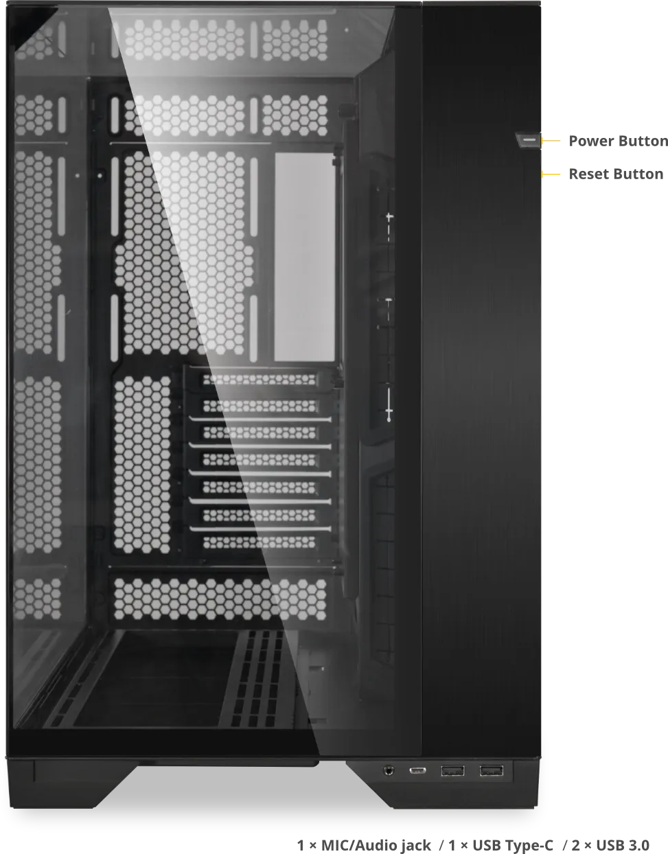 حمایت ساختاری قوی با کلیدهای مقاوم در برابر فشار ۳۵ کیلوگرم طراحی شده است که ثبات بینقصی را برای سه پنل شیشهای کناری در کیس کامپیوتر Lian Li O11 Vision فراهم میکند.