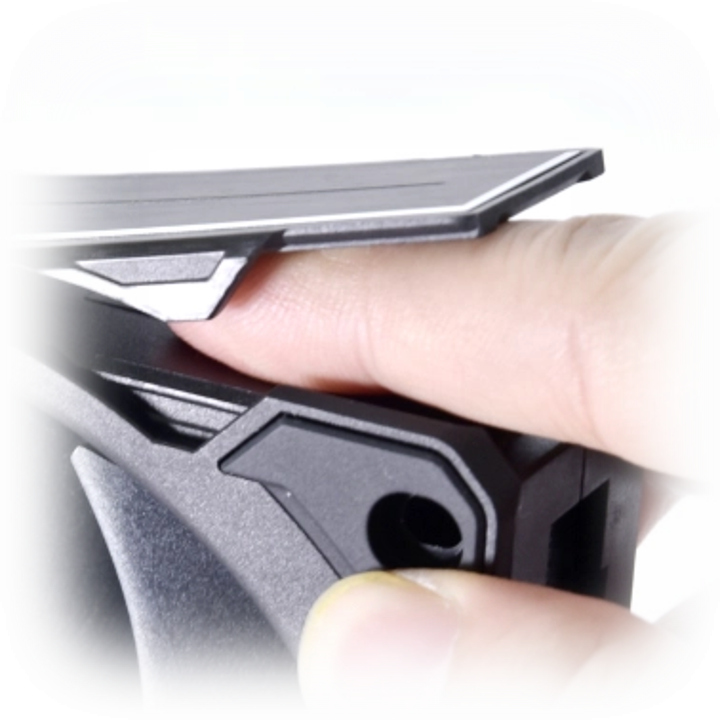 در حالی که ورودی فن را به طرف خود نگه داشتهاید نوار کناری آلومینیومی یا پلاستیکی را با کلید در هم قفل شده از انتهای آن جدا کنید.