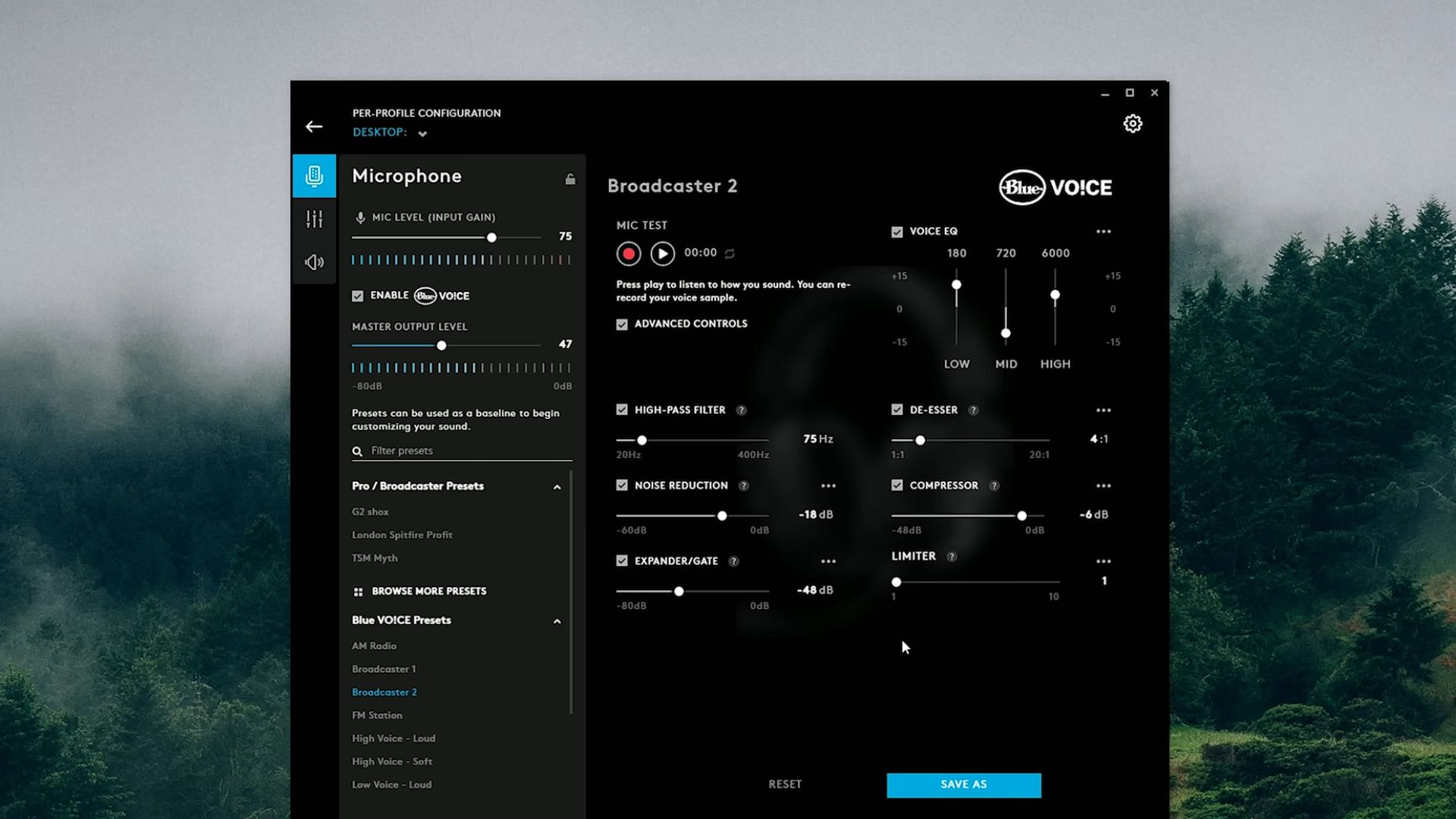 بهلطف پشتیبانی از فیلترهای گوناگون، میتوان لحن گفتار خود را از نظر وضوح، قدرت یا رنگ کلی صدا تغییر داد. بسیاری از استریمرها و بازیکنان رقابتی از این قابلیت برای تنظیم حرفهای صدای خود استفاده میکنند. حتی اگر کسی تجربهٔ چندانی در کار با نرمافزارهای صوتی نداشته باشد، G HUB بهاندازهٔ کافی ساده طراحی شده تا در مدت کوتاهی بتوان هرکدام از پیشتنظیمهای موجود را امتحان کرد و بهترین نتیجه را بهدست آورد.