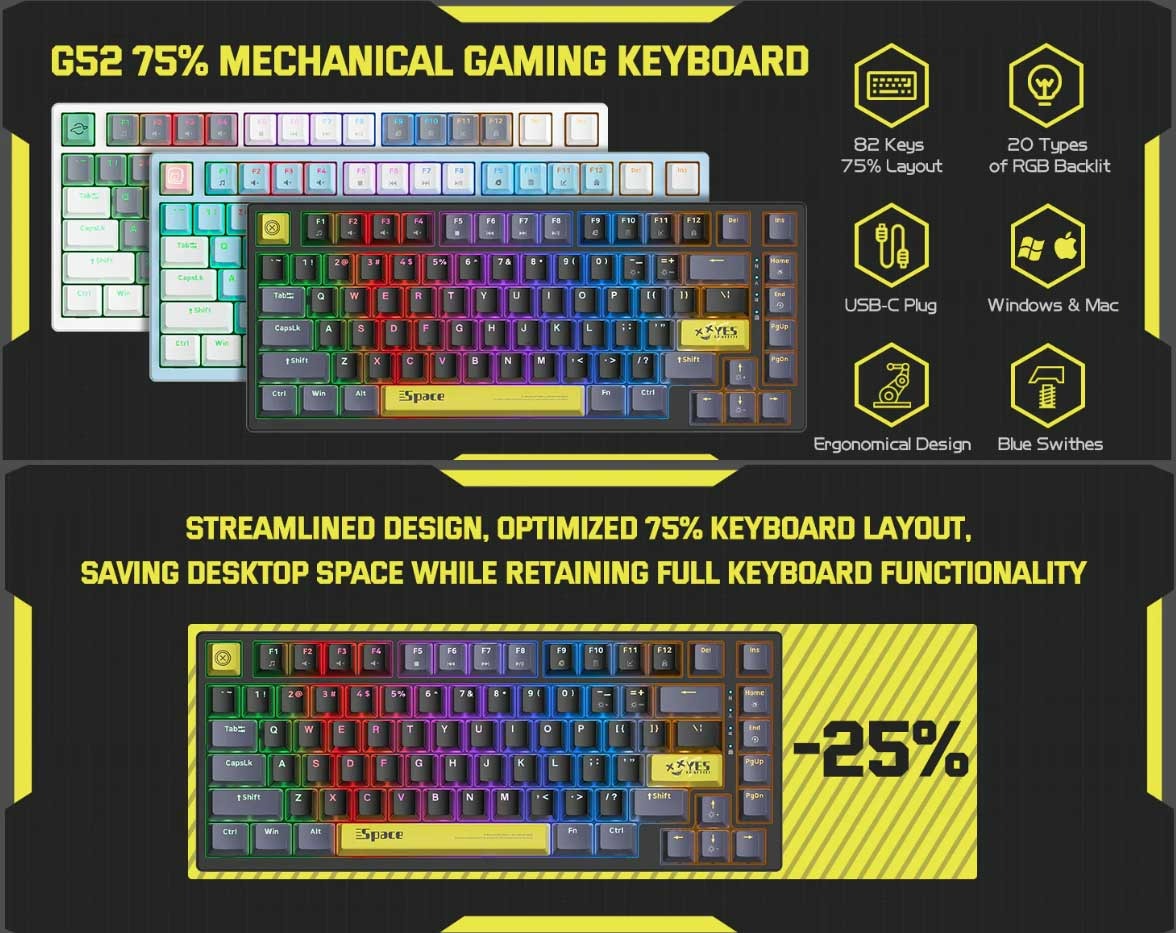 کیبورد Onikuma G52 Space با داشتن سوئیچهای مکانیکی، نورپردازی per-key RGB و چینش 82 کلیدی جمعوجور، در قالب یک کیبورد مشکی و مقاوم ترکیب زیبایی و کارایی را برای گیمرهای جدی و میزهای مرتب ارائه میدهد.