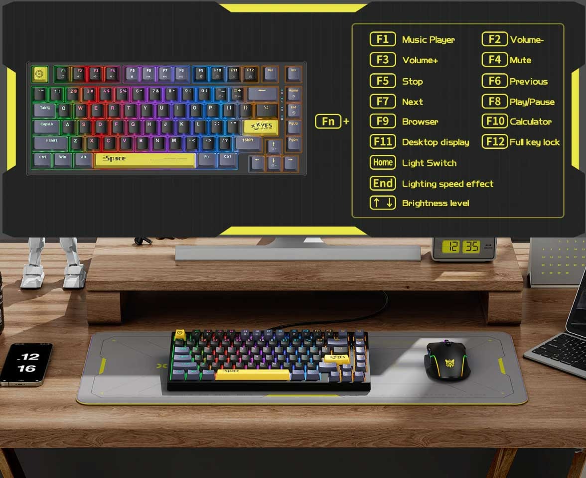 چینش: طراحی مکانیکی جمعوجور 82 کلیدی برای فضای کمتر روی میز و حرکت راحتتر ماوس.
