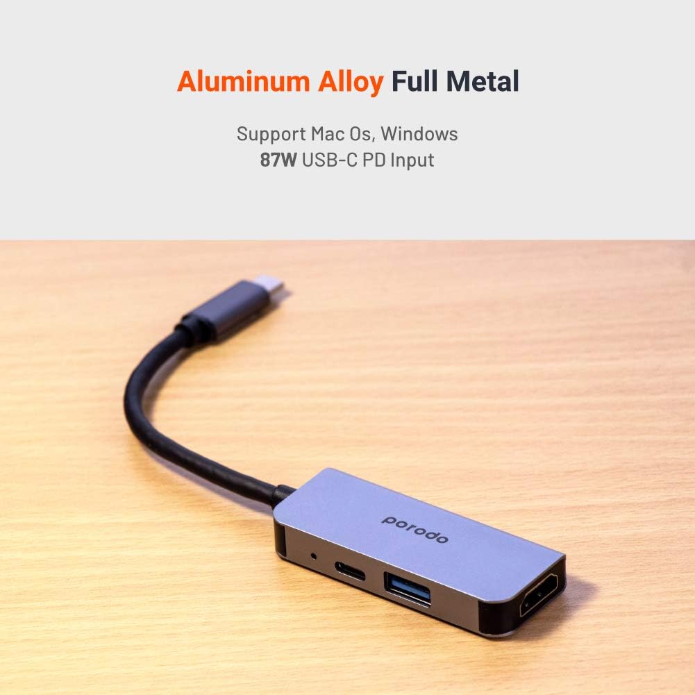 هاب Porodo Aluminum به شما این امکان را میدهد تا سه دستگاه مختلف را با پورت USB-C به کامپیوتر خود متصل کنید.