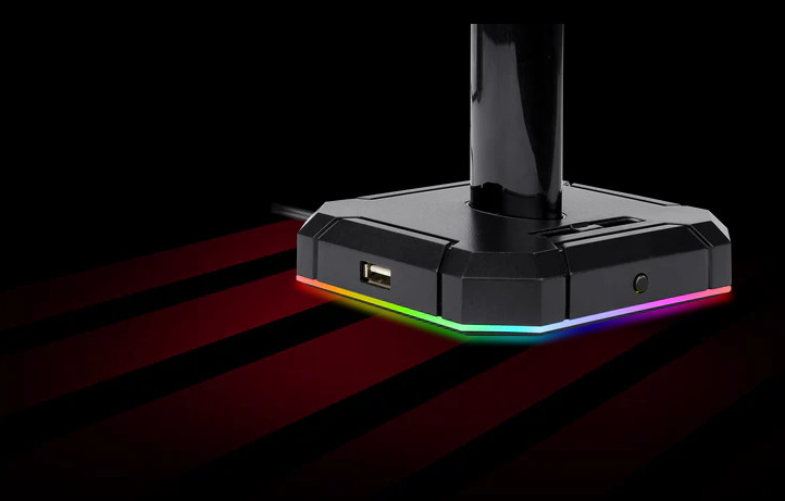 نورپردازی RGB تعبیهشده در اطراف محل قرارگیری هدست، چندین حالت پیشفرض نور را ارائه میدهد تا با هر ستاپی هماهنگ شود. چه یک رنگ ثابت را ترجیح دهید و چه چرخهای پویا، پایه Redragon Scepter Pro در طول جلسات طولانی گیمینگ محیط شما را با نورهای جذاب روشن میکند.
