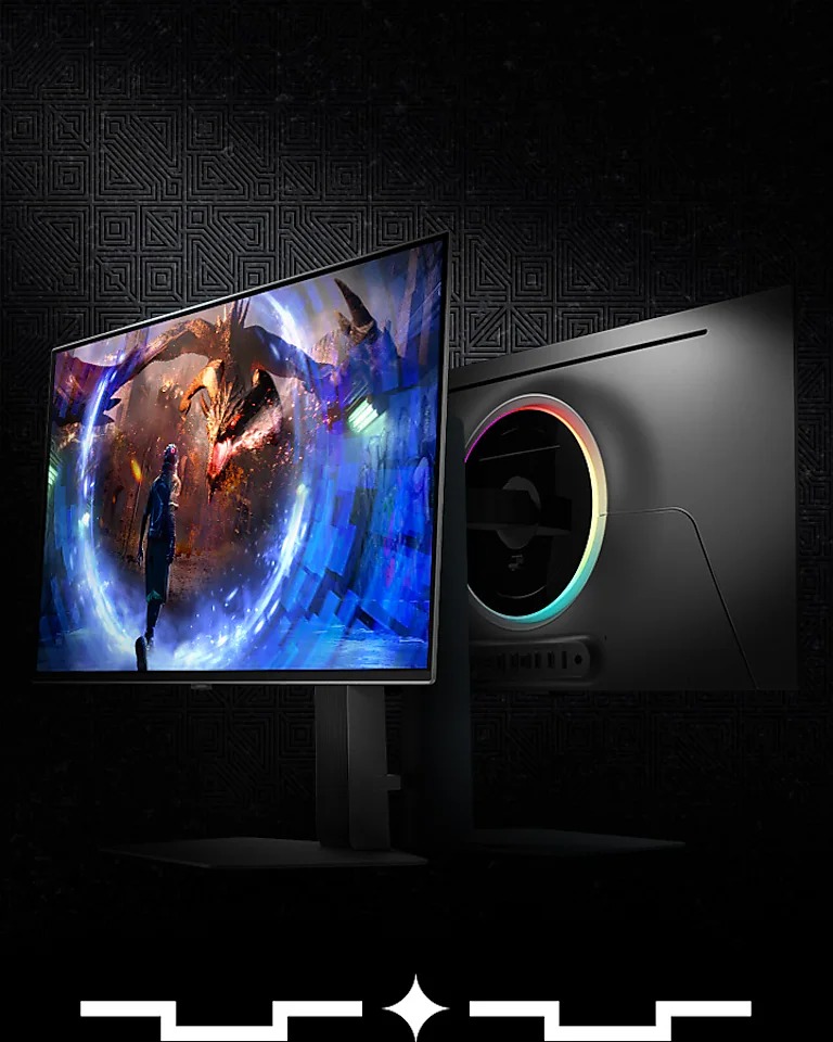مانیتور Samsung Odyssey OLED G6 دارای لبههایی با ضخامت ۳.۹ میلیمتر است و ظاهری جذاب و فوتوریستی دارد که هر مشتاق فناوری را شیفته خود میکند. این مانیتور دارای یک نوار گرد LED مجهز به تکنولوژی CoreLighting+ است تا رنگهای آن را به دلخواه خود تغییر دهید یا آنها را با محیط خود همگامسازی کنید.