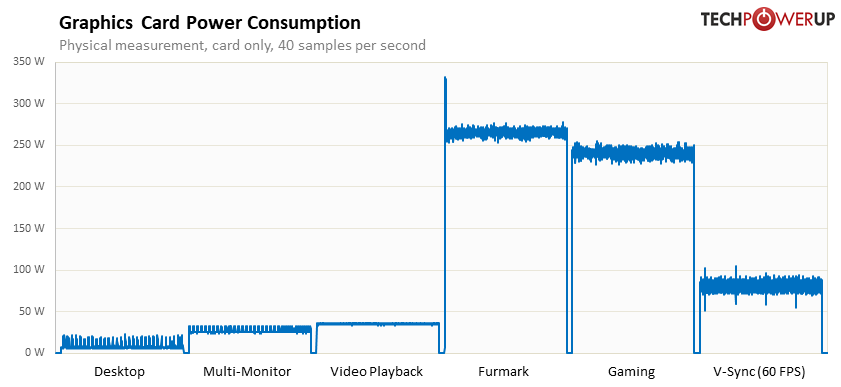 با مشاهده میزان مصرف برق میتوانید تصویر بهتری از میزان پاور مورد نیازتان بهدست آورید. پاور پیشنهادی برای این کارت گرافیک حداقل یک پاور 550 وات است، اما اگر قصد اورکلاک دارید باید پاورهای قدرتمندتری مانند 850 وات بگیرید.
