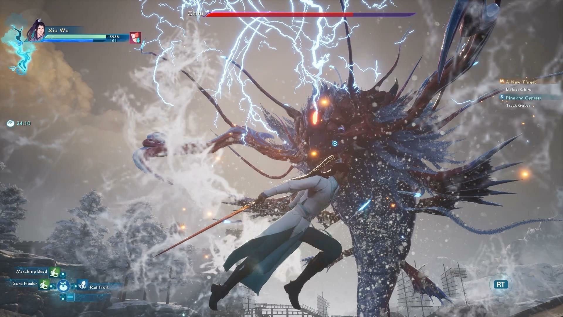 یکی از بزرگترین تغییراتی که بازی Sword and Fairy: Together Forever نسبت به نسخههای کلاسیکتر این سری دارد، رویکرد اکشن در مبارزات است. برخلاف نسخههای قدیمی که بیشتر شباهت به مبارزات نوبتی یا شبهنوبتی داشتند، اینبار شاهد یک سیستم اکشن نقشآفرینی هستیم که ترکیبی از حملات سبک (Light Attack) و سنگین (Heavy Attack)، جادوها و تواناییهای ویژه را در اختیارتان میگذارد. هر یک از چهار شخصیت اصلی — از جمله ژی وو (Xiu Wu) با شمشیرهایش و سانگ یو (Sang Yo) با تیرکمان و معجونهای ویژه — سبک مبارزه متفاوتی دارند که اجازه میدهد بسته به شرایط نبرد، آزادانه بین آنها جابهجا شوید. برای مثال، چنانچه نیاز به مبارزه از فاصله دور داشته باشید، میتوانید بهسراغ سانگ یو بروید و با تیراندازی یا پرتاب معجون، به دشمن صدمه بزنید. اگر مبارزه با حملات فیزیکی نزدیک برایتان جذابتر است، کنترل ژی وو مناسب خواهد بود. چینگشو (Qingshu) نیز تسلط ویژهای بر جادوهای عنصرمحور دارد و میتواند با تواناییهای روحی خود، بلایا را بر سر دشمنان فرود آورد. این تنوع سبکی مانع از یکنواختی میشود و بهخصوص در مواجهه با رئیسها (Boss Fights) جذابیت زیادی پیدا میکند. در گوشه پایین صفحه، یک نوار قابل شارژ وجود دارد که پس از هر ضربه موفقیتآمیز، پر میشود و به شما اجازه فعالسازی قدرتهای ویژه میدهد؛ از یک حالت تقویت موقت تا احضار موجودات الهی که ضربهای سنگین به دشمنان میزنند. اوج قدرت در همین جا پدیدار میشود؛ جایی که میتوانید موجودی شکستناپذیر را احضار کنید و با ضربه دستهجمعی، کار چندین دشمن را یکجا تمام کنید.