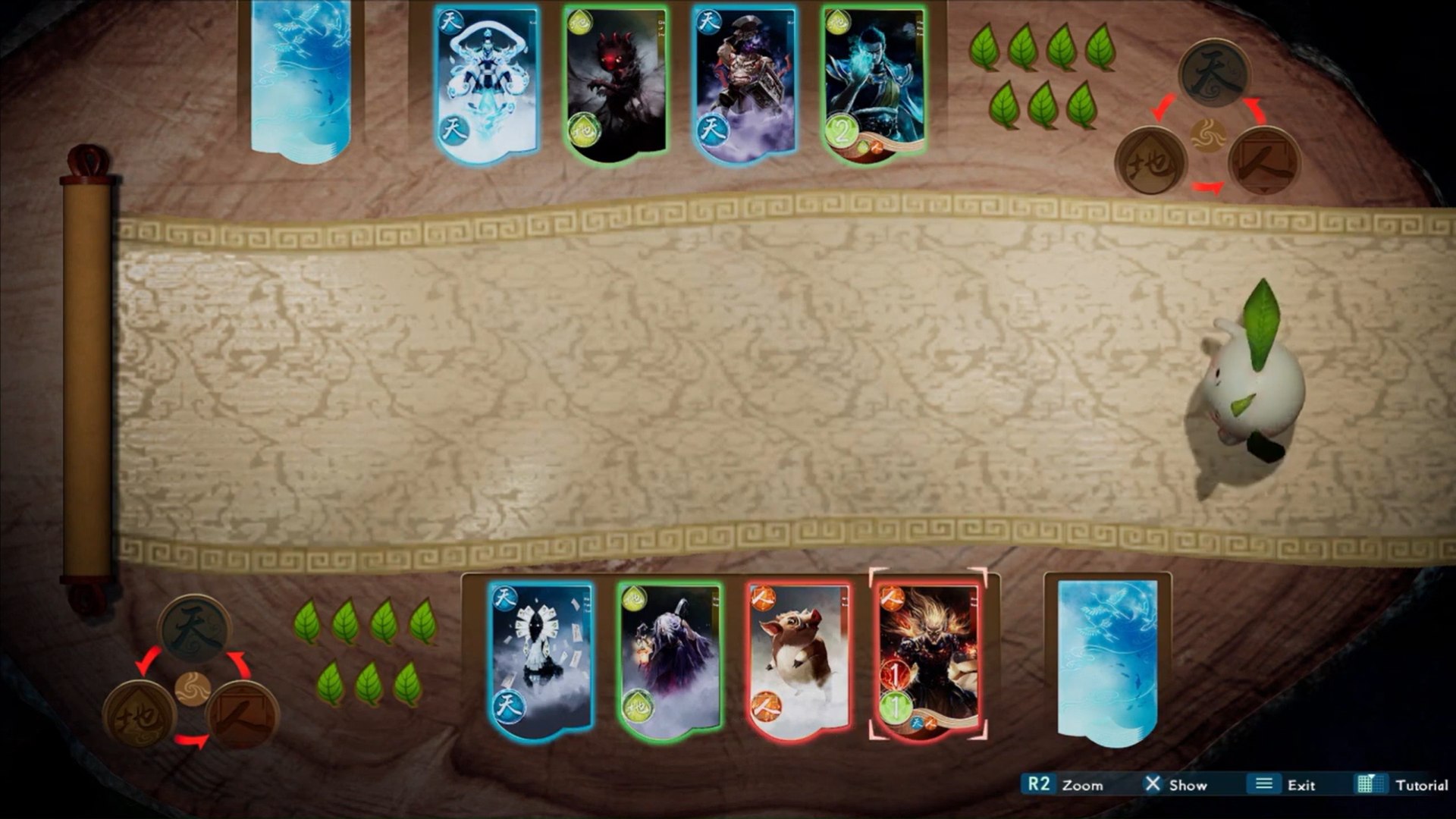 در مسیرتان، با موجوداتی به نام فرشته برگ (Leaf Fairy) مواجه میشوید که شما را به یک رقابت کارتبازی با نام Journey Earth-Heaven دعوت میکنند. ساختار این مینیگیم، مانند سنگ، کاغذ، قیچی است: شما باید از میان کارتهای قرمز، آبی و سبز خود، انتخاب کنید و امیدوار باشید با حرکت حریف مقابله خوبی داشته باشید. برد یا مساوی، بر اساس برخورد رنگها شکل میگیرد و جان حریف با هر شکست کم میشود. شاید این سیستم ساده و تا حدی شانسی بهنظر برسد، اما همچنان میتواند تنوعی جالب در میان نبردهای اصلی باشد. پس از هر پیروزی، کارت جدیدی دریافت میکنید و به این ترتیب، کمکم دست خود را تقویت میکنید. برخلاف کارتبازی، چالش پرش روی برگهای شناور (Leaf Fairy Jump) چندان خوشایند نیست. سکوی برگها در حال چرخش یا حرکتاند و سیستم پرش بازی دقت کافی ندارد. کوچکترین خطا باعث سقوط و شروع مجدد میشود که اگر حوصله تکرار نداشته باشید، احتمالاً چندان سرگرم نخواهد بود. خوشبختانه، این بخش کاملاً اختیاری است و اجباری برای تکمیل آن وجود ندارد.
