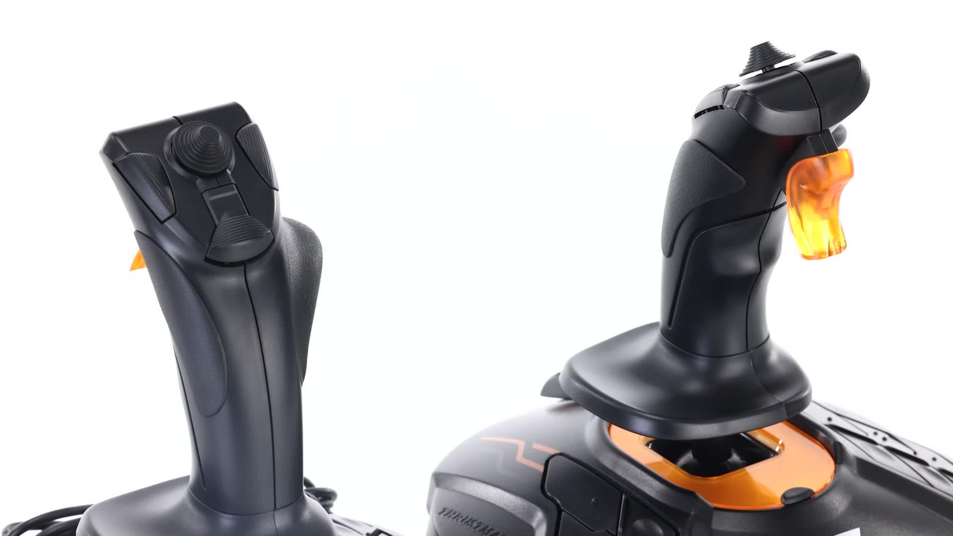 با گسترش روزافزون هدستهای واقعیت مجازی و افزایش بازیها و شبیهسازهای VR، اهمیت طراحی فیزیکی مناسب جوی استیکها بیش از پیش احساس میشود. در یک محیط مجازی، هرچند شاید با حرکت سر یا کنترلرهای مخصوصِ حرکتی درگیر شوید، اما برای کنترل وسیلهای مانند سفینه فضایی یا هواپیما، وجود یک جوی استیک فیزیکی همچنان ضروری است. پک دوگانه جوی استیک پرواز Thrustmaster T.16000M FCS بهگونهای طراحی شده که کاربر بتواند بدون نگاهکردن مداوم به دستهای خود، بهصورت کاملاً شهودی دکمهها را تشخیص دهد. برآمدگیهای بریلمانند روی بعضی دکمهها، فاصله و شکل خاصِ دکمهها، و البته امکان برنامهریزی ساده آنها از طریق نرمافزار T.A.R.G.E.T باعث میشوند هنگام پرواز در دنیای واقعیت مجازی، تمرکزتان تنها روی محیط بازی باشد. همچنین حرکات نرم و بدون اصطکاک ناشی از فناوری H.E.A.R.T سبب میشود احساس کنید در حال کنترل یک وسیله واقعی هستید و کوچکترین لرزشهای دستتان نیز در بازی منعکس میشوند.