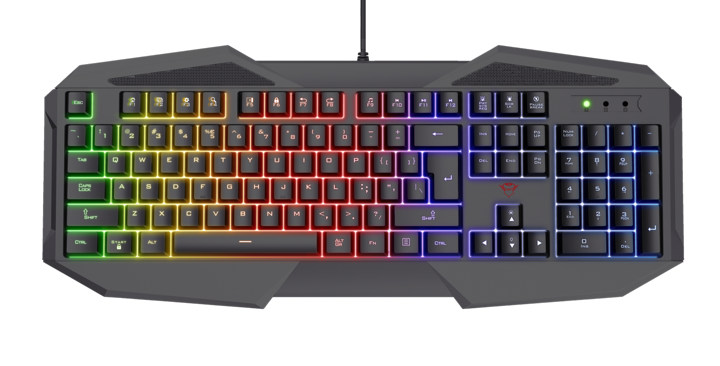 Trust GXT Gaming Bundle یک پکیج کامل برای تجربه بازیهای ویدیویی روز با بهترین کیفیت ممکن و اوج لذت است. این باندل به تمام تبلتها و لپتاپها متصل شده و برای راهاندازی آن کار دشواری پیش رو نخواهید داشت. این باندل گیمینگ شامل یک صفحه کلید با چیدمان جذاب و نورپردازی رنگین کمان بوده و دارای شش کلید مخصوص کاهش Ghosting در عملکرد فنی و 12 کلید چندرسانهای میانبر است که کار را برای کاربر آسان میسازد.