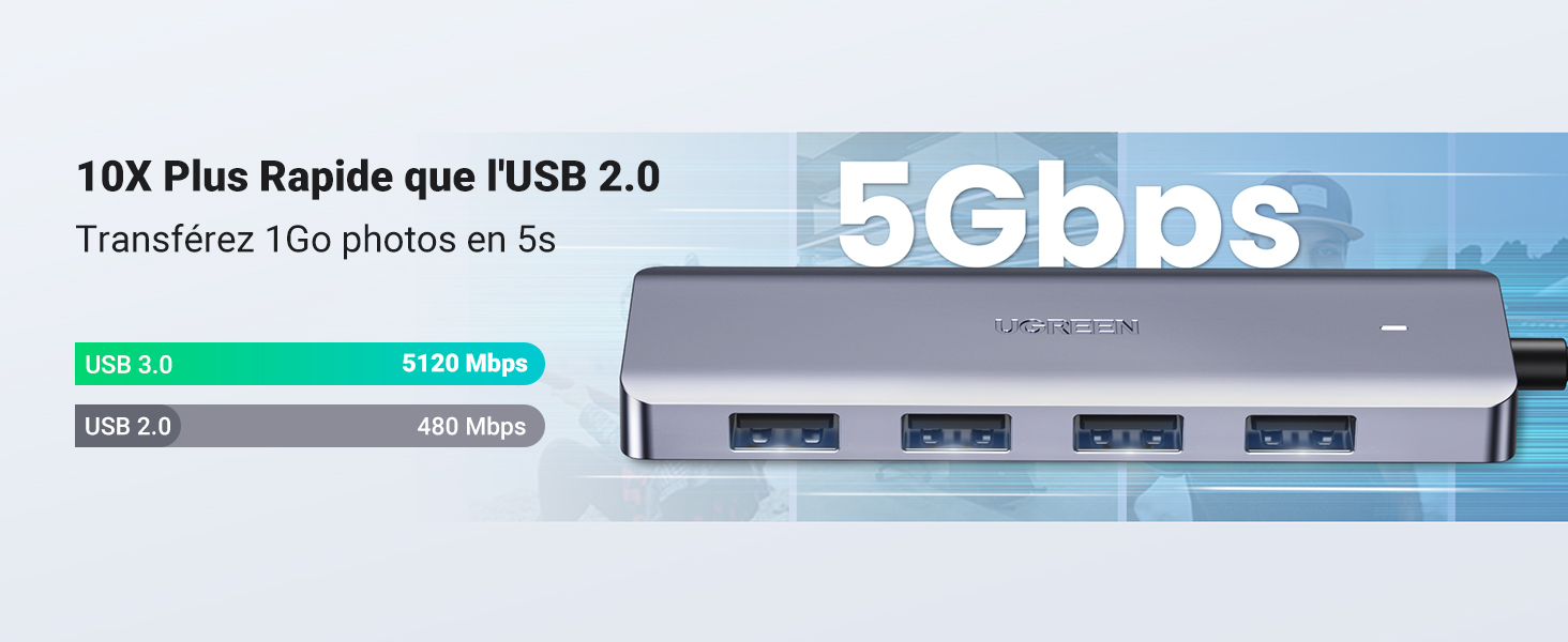دیگر نگران کمبود پورتهای کامپیوتر و لپ تاپ خود نباشید. هاب UGREEN با چهار پورت USB 3.0 و یک پورت USB-C، با یک کابل USB-C به کامپیوتر شما وصل میشود و چهار پورت USB.3 برای اتصال انواع لوازم جانبی را در اختیار شما قرار میدهد.