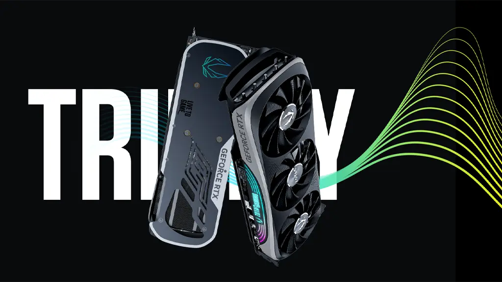 فرکانس کارت گرافیک ZOTAC GeForce RTX 4070 Trinity برابر با 2475 مگاهرتز است. معماری کارت گرافیکهای سری 40، Ada Lovelace نام دارند که به لطف نسل چهارم هستههای تنسور و قابلیت جدید OPA پیشرفت چشمگیری در زمینه هوش مصنوعی داشته است. این کارت گرافیک از چیپ گرافیکی AD104 شرکت TSMC با لیتوگرافی چهار نانومتری بهره میبرد که 35.8 میلیارد ترانزیستور را در خود جای داده است. در این پردازنده گرافیکی، انویدیا 5888 هسته کودا یا همان هستههای سایه زن، 184 هسته نسله چهارم تنسور، 46 هسته نسل سوم رهگیری پرتو نور، 184 واحد نقشه گذاری بافت و 64 واحد خروجی رندر را به کار گرفته و آنها را به 12 گیگابایت حافظه GDDR6X با سرعت 21 گیگابایت بر ثانیه، پهنای باند 504 گیگابایت بر ثانیه و رابط حافظه 192 بیتی متصل کرده است.
